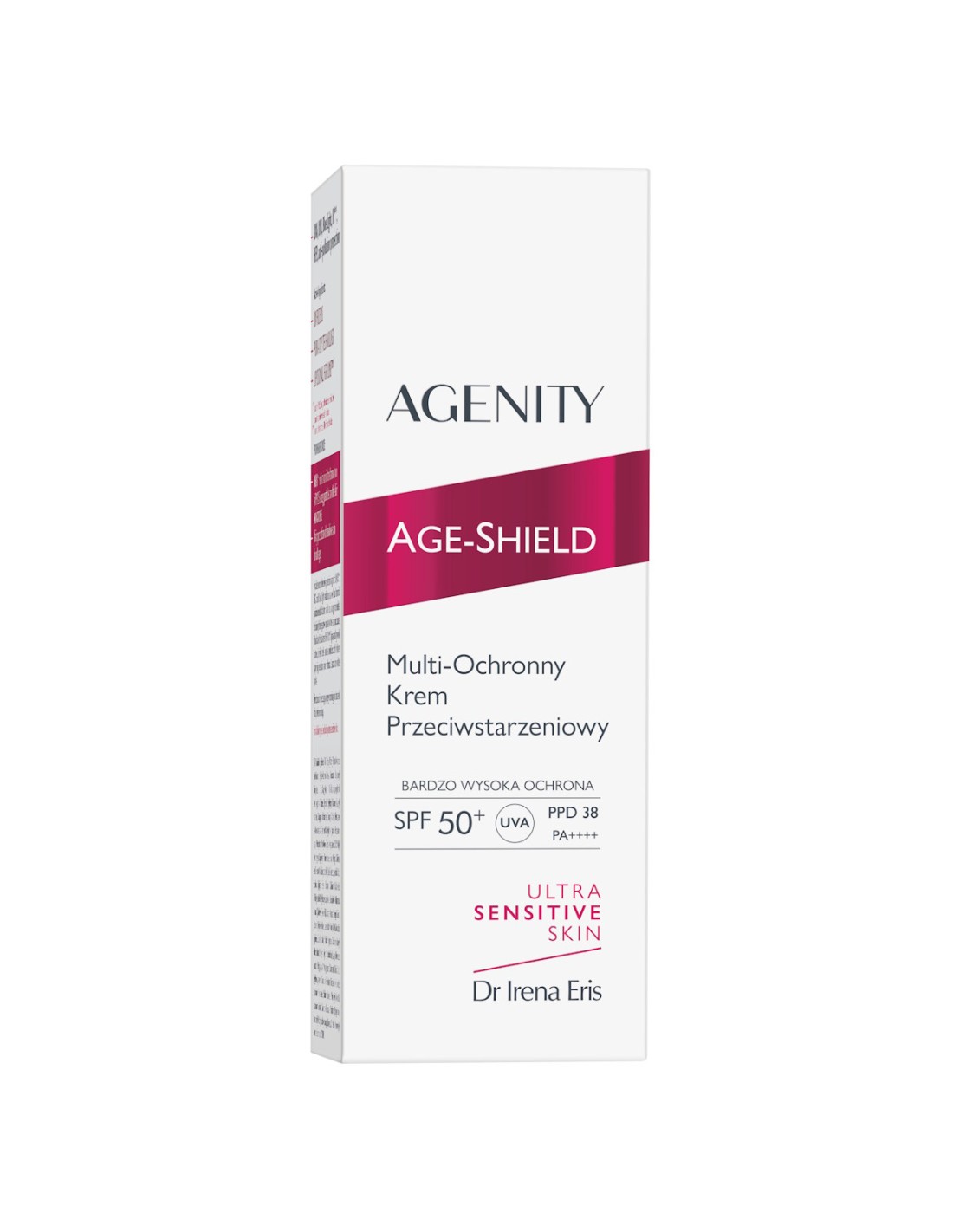 Agenity Age-Shield Multi-zaštitna Anti-Age krema SPF50+ je napredna dnevna krema za lice koja pruža vrlo visoku zaštitu od UVA i UVB zraka te pomaže u prevenciji prijevremenog starenja kože uzrokovanog sunčevim zračenjem i vanjskim utjecajima. Formula kombinira UV filtre širokog spektra, hidratantne i anti-age sastojke koji pomažu očuvati elastičnost kože, smanjiti pojavu finih linija i bora te održati zdrav i ujednačen ten. Lagana tekstura brzo se upija, ne ostavlja bijeli trag i pogodna je za svakodnevnu upotrebu, uključujući kao podlogu za šminku.