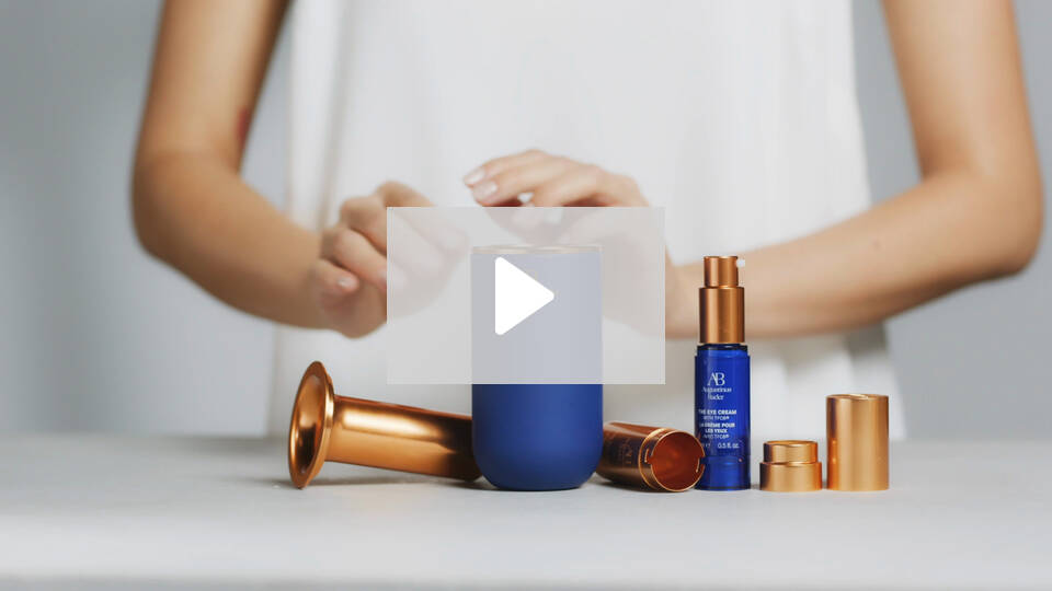 The Eye Cream 15 ml Full Size Set kreme za oči i sustava za ponovno punjenje, uključuje keramičku bazu – keramika je inertan, materijal koji ne zagađuje okoliš – a pumpa za ponovno punjenje/bezzračna pumpa smještena je u 100% reciklirajućem aluminijskom pakiranju.