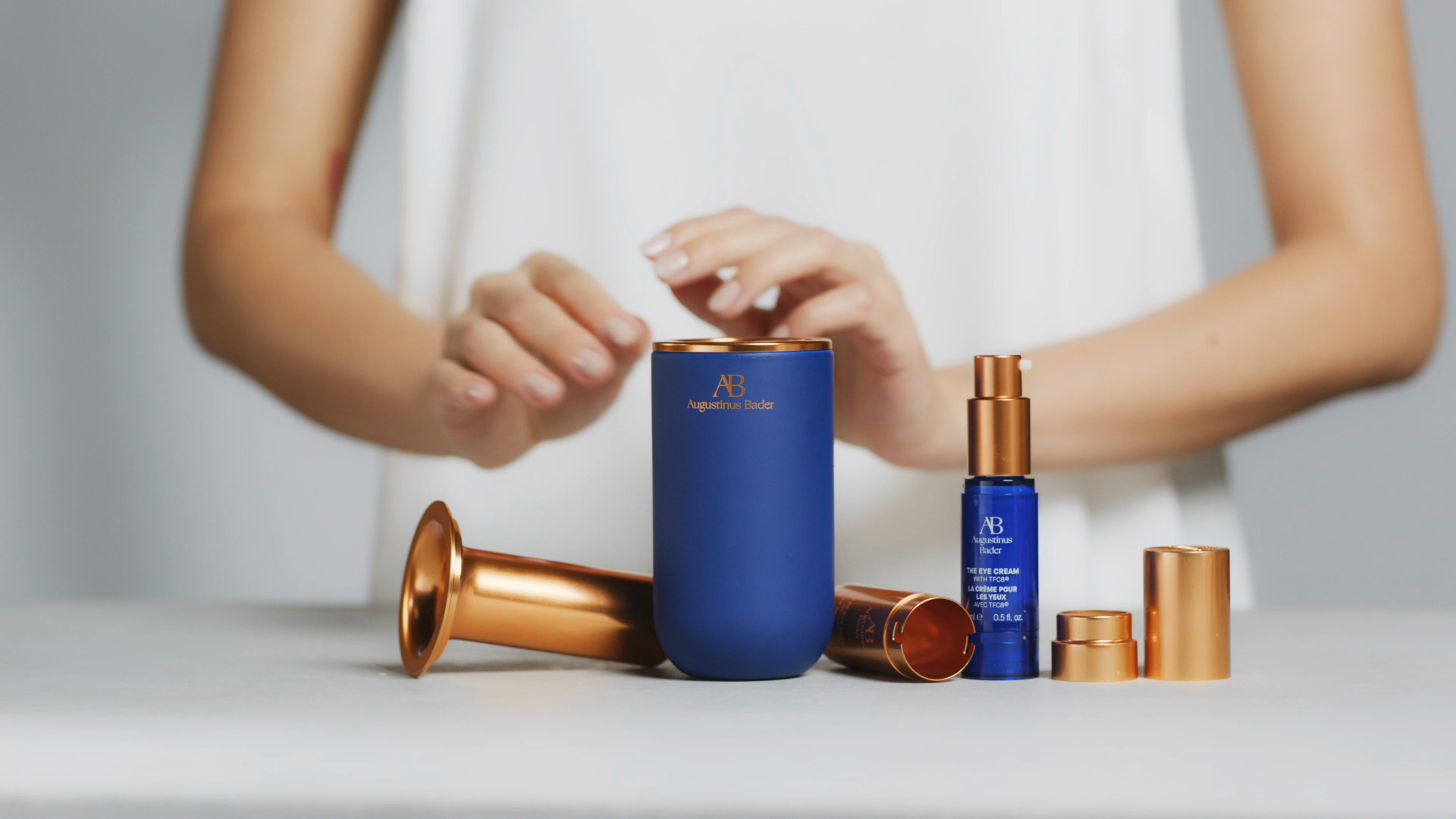 The Eye Cream 15 ml Full Size Set kreme za oči i sustava za ponovno punjenje, uključuje keramičku bazu – keramika je inertan, materijal koji ne zagađuje okoliš – a pumpa za ponovno punjenje/bezzračna pumpa smještena je u 100% reciklirajućem aluminijskom pakiranju.
