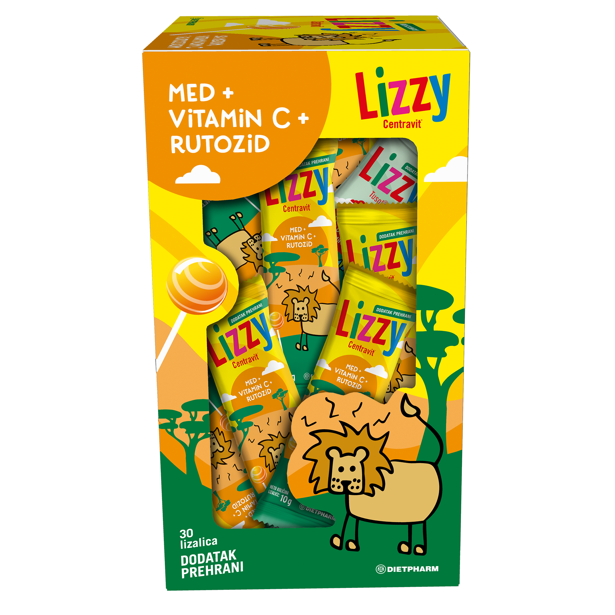 Lizzy Centravit lizalica je proizvod s medom, vitaminom C i rutozidom namijenjen djeci.