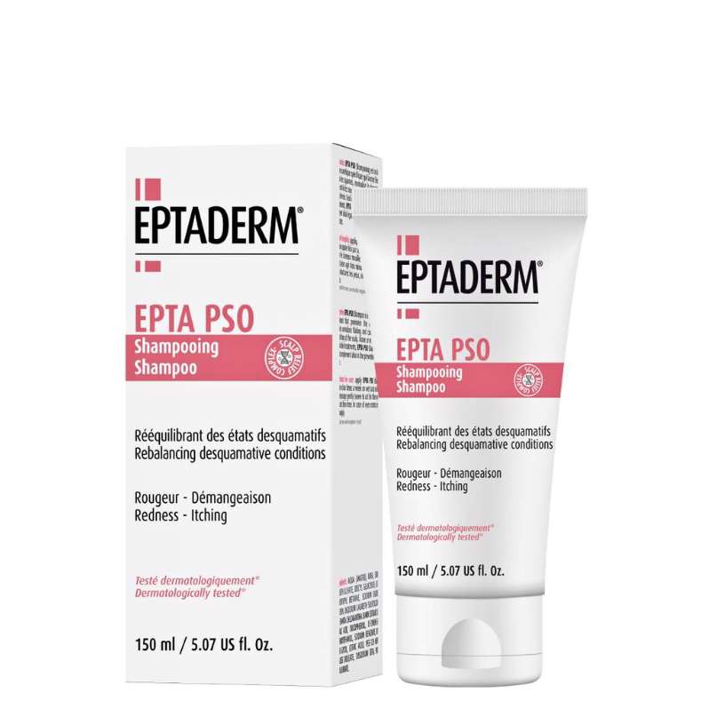 EPTA PSO šampon je specifični kozmetički tretman koji potiče eliminaciju ljuskica, normalizira ljuštenje i kontrolira crvenilo i svrbež vlasišta.