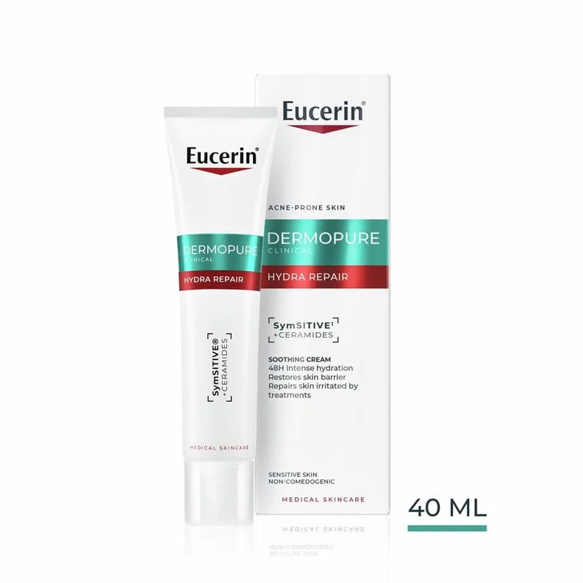 Eucerin DermoPure Clinical Hydra Repair krema je dopunska umirujuća krema koja obnavlja zaštitnu barijeru kože i trenutno smanjuje peckanje i svrbež na nadraženoj koži.
