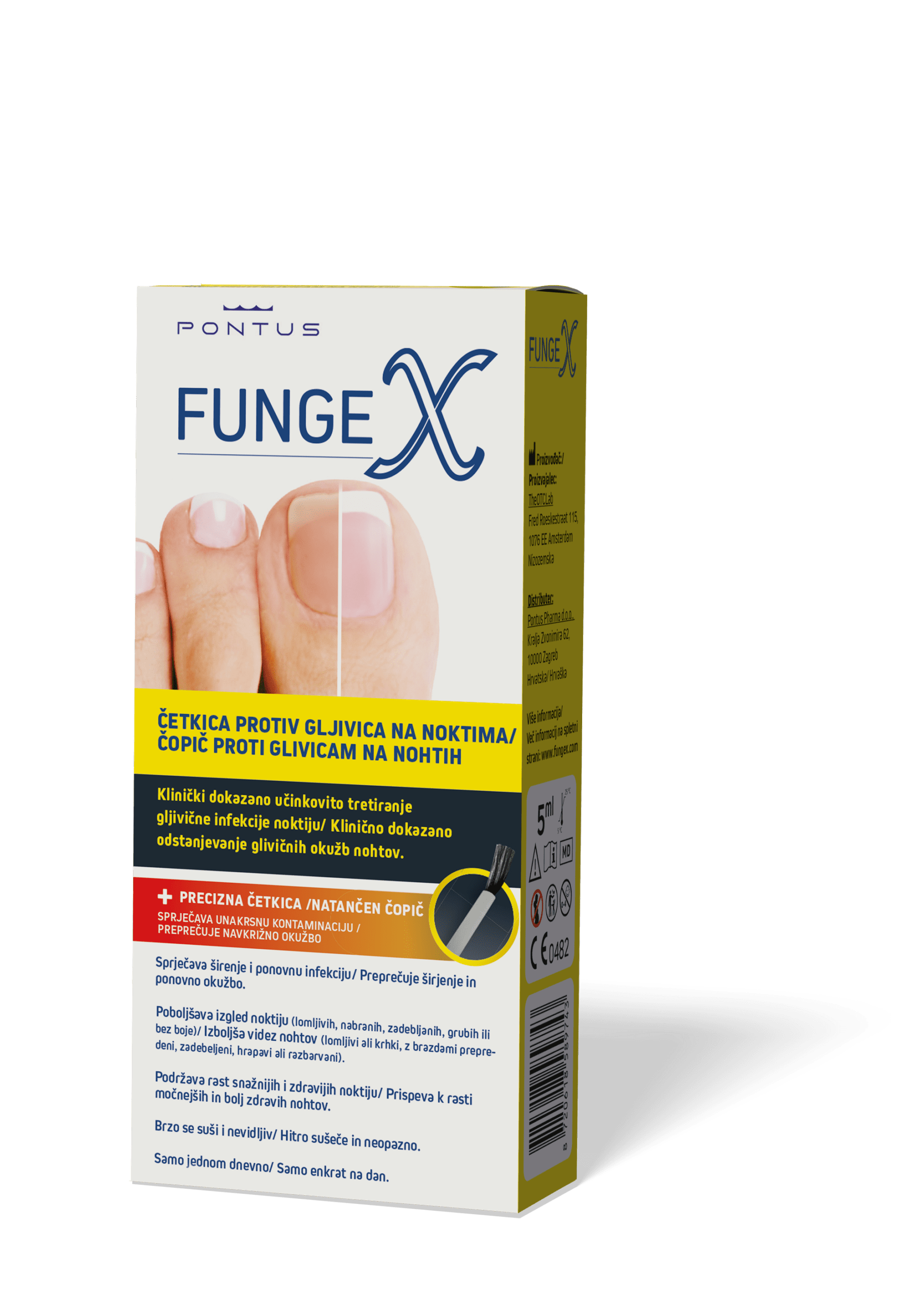 FungeX četkica protiv gljivica na noktima namijenjena je tretiranju i njezi noktiju zahvaćenih gljivičnim infekcijama. Posebno formulirana otopina u praktičnoj četkici omogućuje precizno nanošenje izravno na zahvaćeni nokat, pomažući u smanjenju gljivica te poboljšanju izgleda i zdravlja nokta.