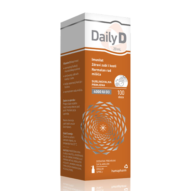 Daily D 4000 IU oralni sprej sadrži Vitamin D3 (kolekaciferol) u obliku suspenzije u dozi od 4000 IU.