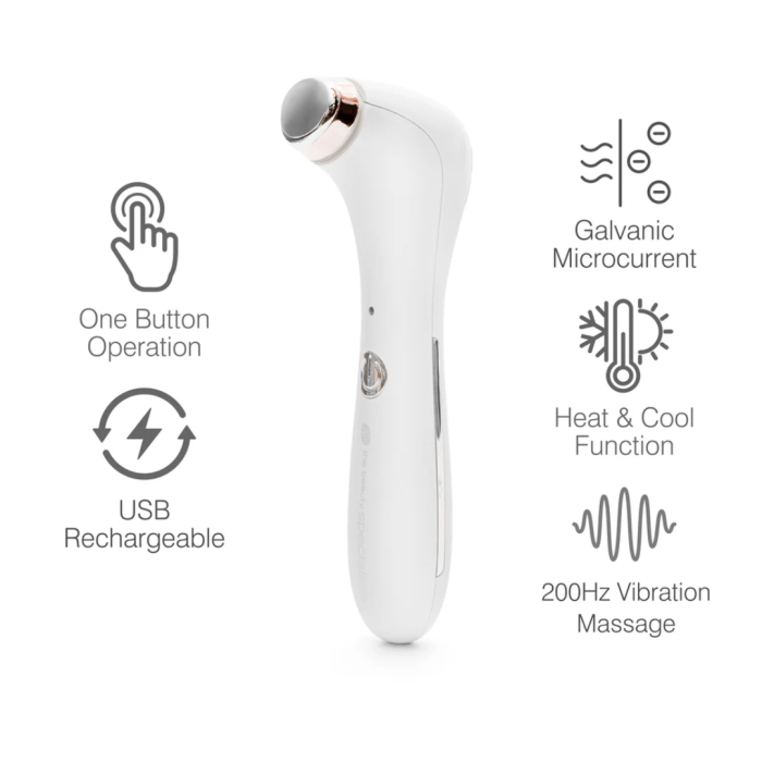 Rio Eye Refreshing Massager je napredni 4-u-1 uređaj za njegu područja oko očiju koji kombinira toplinsku terapiju, hlađenje, vibracijsku masažu i galvansku mikrostuju. Dizajniran za smanjenje podočnjaka, oteklina i znakova umora, ovaj kompaktni uređaj poboljšava mikrocirkulaciju i pojačava apsorpciju aktivnih sastojaka iz seruma i krema. Rio Eye Refreshing Massager je idealan za svakodnevnu kućnu ili putnu rutinu njege.