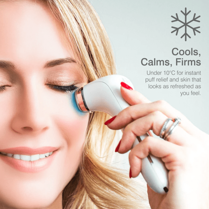 Uključite uređaj i laganim pokretima prelazite preko područja oko očiju. Koristite svakodnevno, ujutro za smanjenje oteklina ili navečer za opuštanje i bolju apsorpciju njege. Može se koristiti samostalno ili uz serum/kremu.