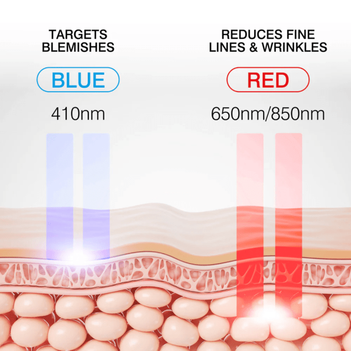 • Crvena (650 nm) – smanjuje bore, potiče kolagen i obnavlja kožu