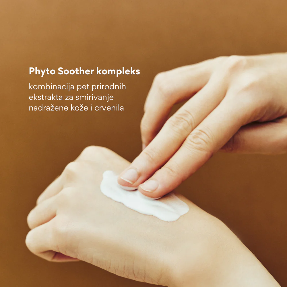 kombinacija pet prirodnih ekstrakta za smirivanje nadražene kože i crvenila. Ekstrakti smeđe alge, korijena japanskog brijesta i jama, aloe vere i mandžurijske ljubičice donose blagi učinak hlađenja, vraćaju osjećaj ugode i smanjuju znakove preosjetljivosti kože.