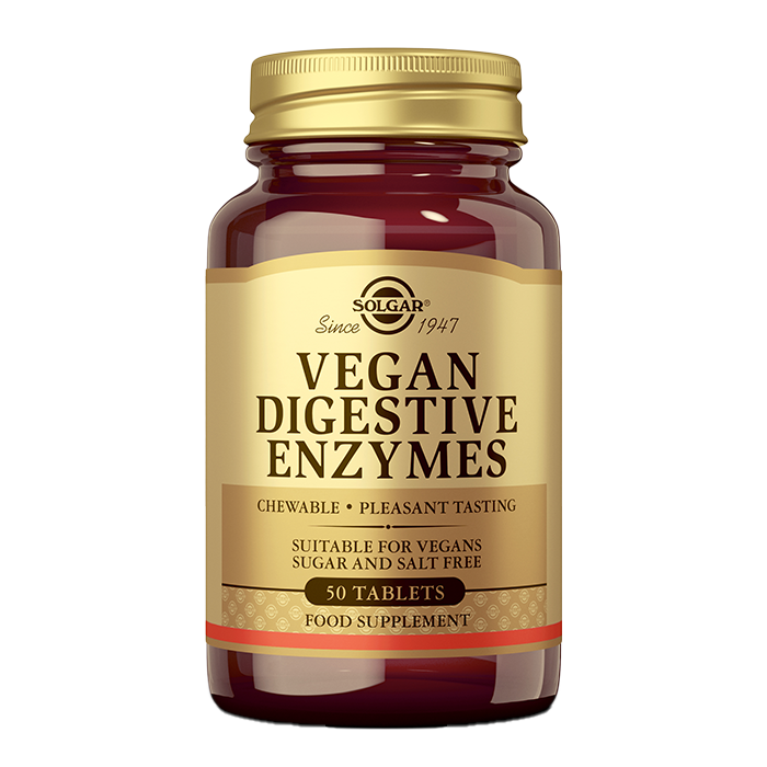 Solgar probavni enzimi tablete za žvakanje posebno su formulirane za vegane i sve koji traže učinkovitu, biljnu podršku probavi. Ovaj dodatak prehrani sadrži patentirani kompleks enzima biljnog podrijetla koji pomaže razgradnji hrane i podržava optimalnu probavnu funkciju.