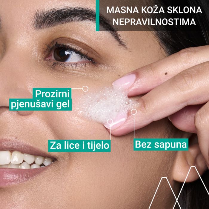 HYSEAC gel za čišćenje protiv nepravilnosti formuliran je s priznatim dermatološkim aktivnim sastojcima te uklanja nečistoće i višak sebuma s masne kože sklone aknama. Njegova pjenasta tekstura svakodnevno čisti, matira i pročišćava kožu. Bez sapuna. Dermatološki testirano na koži sklonoj aknama. Nekomedogeno.